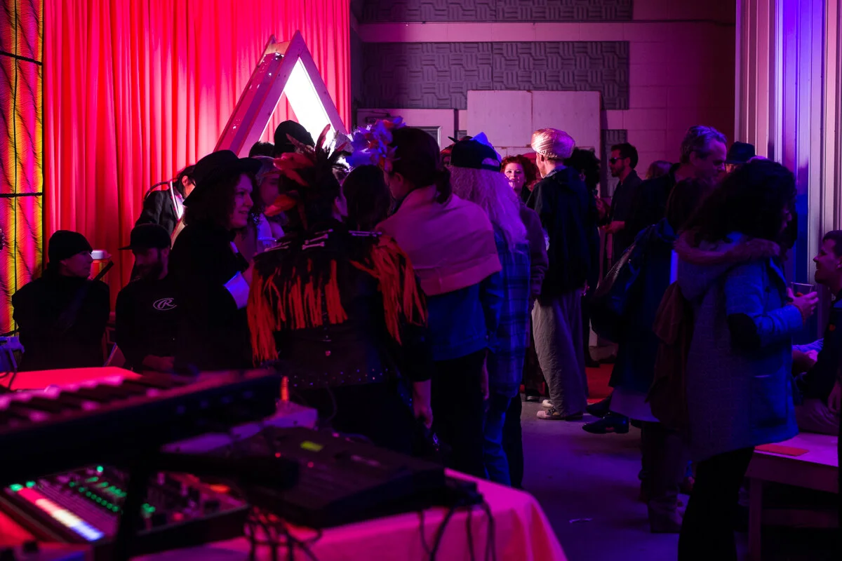 Working with the basic principle that we are hard-wired to receive and distinguish certain unique hues of colour, the artist collective Instant Coffee prod to heighten pinkish sentiments. Their ongoing research project Pink Noise drives at colliding and provoking the basic sensory mechanics of colour and sound to form temperamental emotional connections. Their cursory research takes its initial form as part of Luminocity as a gathering place and a series of music performances. Instant Coffee will turn Kamloops’ Rotary Bandshell at Riverside Park into a vibrant pink-washed venue from which to host four evenings of events. Come through the back and delve into a material investigation of pink noise.
